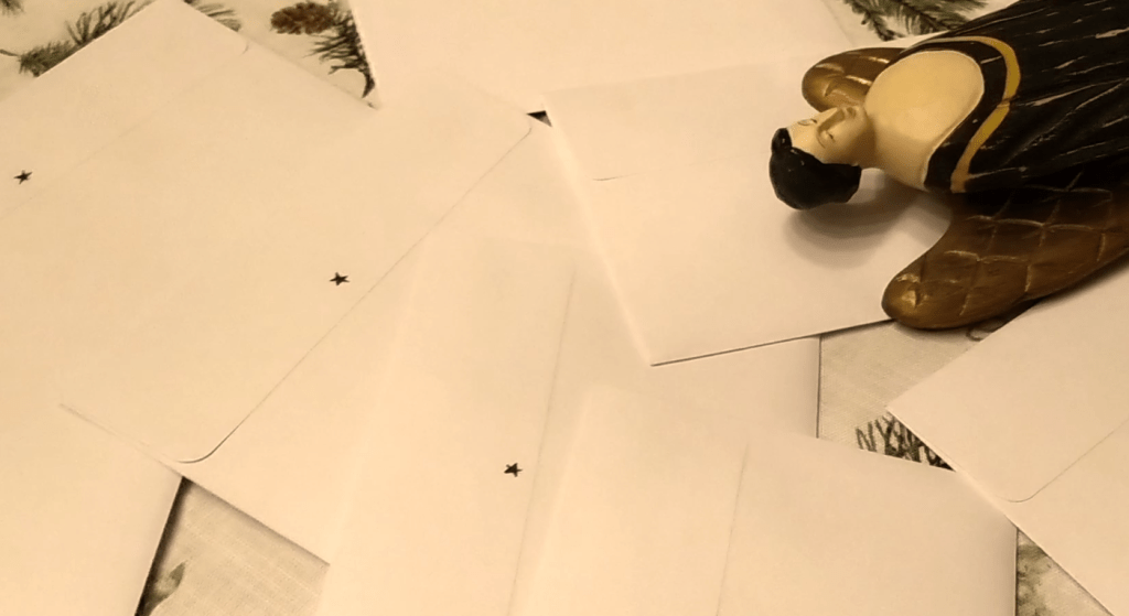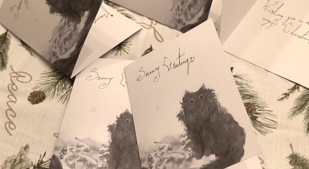 This year I decided to make Christmas cards for the first time. It was a lot more work than I thought. My coziness manager, Freya, carefully supervised every step of the process.